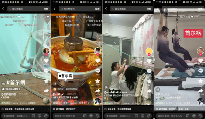 在抖音上热传的“首尔病”视频,大都是这种搞笑创作